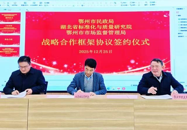 环球与瞭望网湖北讯(邓光耀 通讯员 李姣)12月25日,鄂州市民政局与市市场监管局、湖北省标准化与质量研究院在鄂州市共益园正式签署《鄂州市民政标准化体系建设战略合作框架协议》。三方将聚焦养老服务、社会救助等核心民生领域深化协作,以标准化建设破解服务痛点、打通跨域壁垒,为武汉都市圈"民生同保"战略落地注入鄂州动能,标志着鄂州民政事业迈入标准化引领、规范化发展的全新阶段。