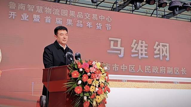 在领导致辞环节,枣庄市市中区人民政府副区长马维刚首先代表地方政府致辞。他指出,鲁南果品交易中心是完善城市功能、保障市场供应、促进消费升级的关键项目,区政府将持续优化营商环境,全力支持交易中心发展壮大,期待其成为辐射鲁南、服务民生的重要平台。