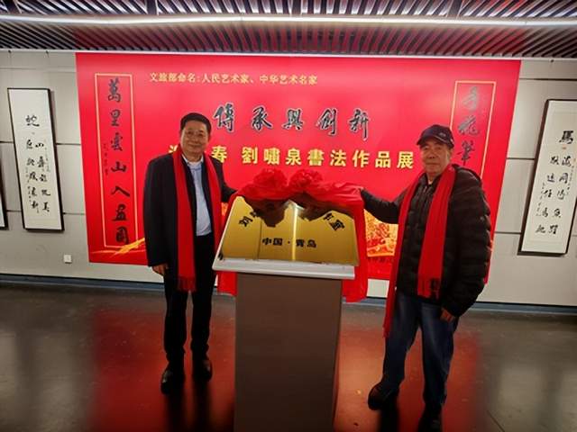 开幕式的压轴环节,是由原青岛市政协副主席刘光享先生与青岛一战史研究会会长刘兆民先生共同为“刘啸泉书法青岛工作室”揭牌。这一仪式的举行,标志着刘啸泉先生的书法艺术在青岛这座历史文化名城有了一个固定的传播、交流与研究基地,对于促进两地乃至更广泛区域的文化艺术交流具有积极的推动作用。