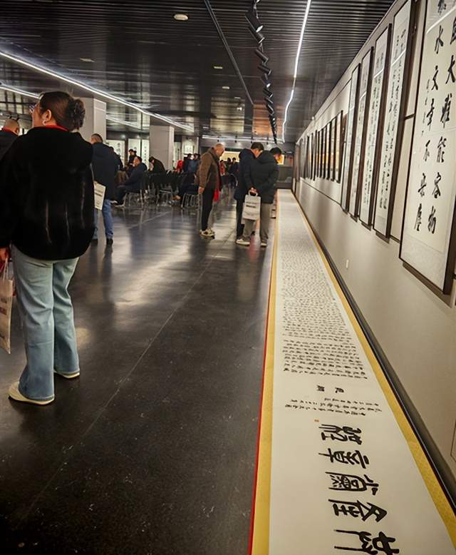 尤为引人注目的,是那卷长达108米的《中国共产党章程》书法长卷部分精选章节的展示。面对这蜿蜒如历史长河般的煌煌巨制,每一位观者都肃然起敬。它已远远超出一件普通艺术品的范畴,凝聚了艺术家无以计量的心血、超凡的毅力以及至诚的敬意。笔墨的行走间,是将忠诚信仰升华为一种深具仪式感与文化厚度的表达;字里行间,饱含着对理想信念的执着坚守与对时代责任的自觉担当。这件作品,是刘啸泉作为新时代艺术工作者,将个人艺术追求主动融入国家民族发展洪流,以笔墨记录时代、讴歌时代、服务人民的生动实践和崇高情怀的集中体现。