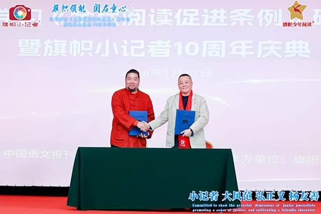吉林省全民阅读协会副会长李国荣代表书香小记者与旗帜小记者创始人杜海义签约