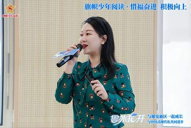 旗帜少年阅读主理人孙晓颖主题分享旗帜少年阅读的使命,始终以立德树人为根本遵循,以书香润童心、阅读筑未来为核心宗旨,立足雄安新区高质量发展大局,深耕校园阅读文化建设,用经典文学浸润童心、用科学体系赋能成长,着力培育爱读书、读好书、善读书的新时代雄安少年,让阅读成为伴随孩子一生的精神底色。旨在深入贯彻《全民阅读促进条例》精神,依托AI大数据分级阅读与科学测评体系,为雄东爱景小学构建系统化、特色化、常态化的校园阅读模式;通过搭建名家引领、平台支撑、实践赋能的阅读成长路径,激发学生阅读兴趣、提升阅读能力、夯实写作基础,助力学校书香校园建设走深走实,为雄安新区青少年全面发展提供坚实支撑。