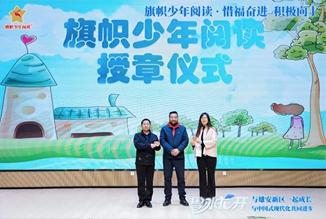 为表彰先进、树立榜样,旗帜少年阅读特别为雄安容西云溪小学、容城县东牛小学授予“旗帜阅读之星”专属臂章,激励更多同学以书香为伴,勤学善思,让阅读成为伴随一生的好习惯。